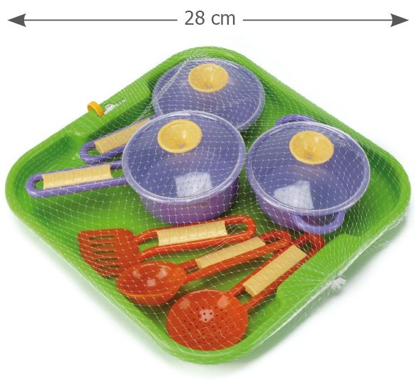Wszystkie nasze naczynia są dopuszczone do kontaktu z żywnością, są bardzo elastyczne i nie łamią się, można używać ich w kuchence mikrofalowej jak i myć w zmywarce. Zabawkę można łączyć z pozostałymi zestawami z serii Świat kuchni.