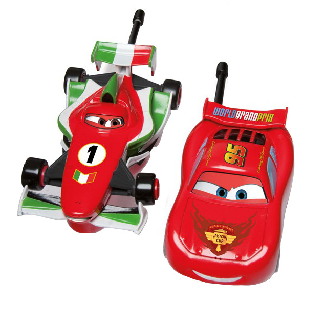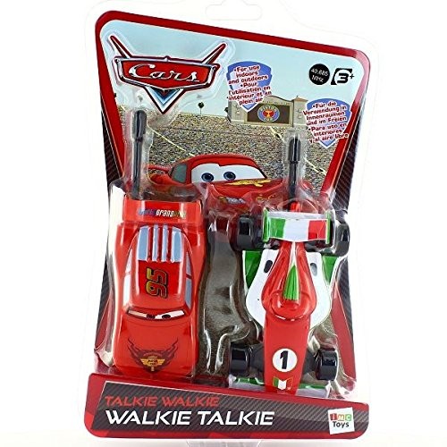 Walkie Talkie Disney McQueen i Francesco to zestaw dwóch zabawek w unikatowych kształtach. Wystarczy przytrzymać tylnią oponę i mówic do ich masek, by pozostać w kontakcie. Obie słuchawki wyglądają jak bohaterowie dobrze znani z bajki Auta 2. Chłopcy uwielbiają Zygzaka McQueena i Fransceso, dlatego z radością wypróbują ich możliwości. Dzięki zabawie Walkie Talkie chłopcy będą mieli okazję poczuć się jak na wyścigach, kiedy to przez słuchawki omówią strategię wyścigu. To będzie świetna zabawa! Dzięki dwóm krótkofalówkom jakie znajdują się w zestawie dzieci bez problemu mogą porozumiewać się między sobą podczas odbywania swoich przygód. Możliwość przyczepienia krótkofalówki do paska dzięki odpowiednim klamrą.