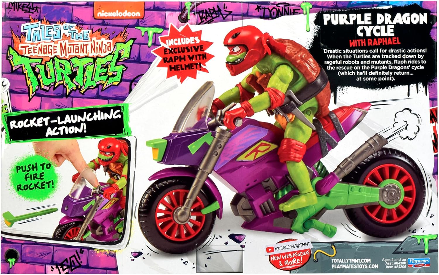 Gdy Raph odkrywa, że został sam na terytorium wroga, musi szybko uciekać. A nie ma nic szybszego niż motocykl bitewny Fioletowych Smoków! Korzystając ze skradzionego ? to znaczy pożyczonego ? motocykla, Raph pędzi przez miasto, by ostrzec swoich braci przed nowym, przerażającym wrogiem, który zagraża całemu rodzajowi mutantów! Aby chronić siebie i swoich braci, Raph ma reflektor z ukrytym pociskiem, który można wystrzelić, naciskając jeden przycisk.
