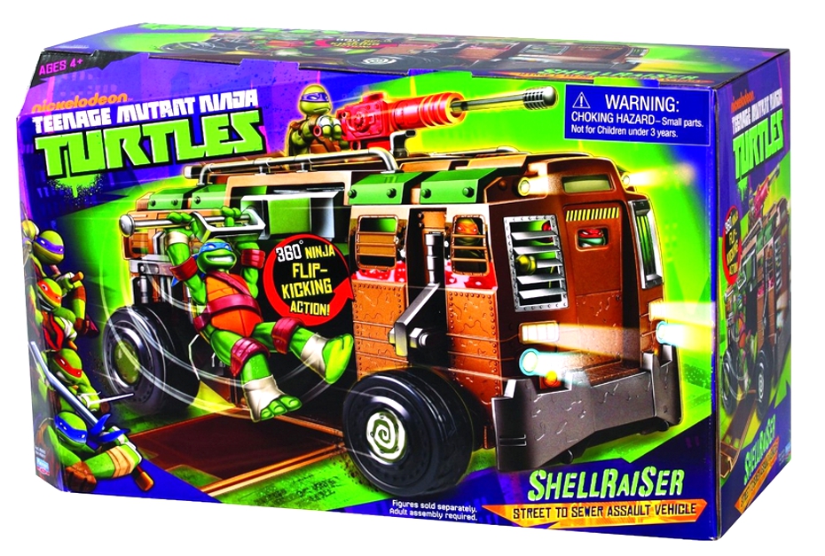Żółwie postanowiły skonstruować pojazd specjalny. Pojazd Shellraiser został zbudowany ze starego wagonu metra i wyposażony w opony, które pozwalają na dziką jazdę po ulicach oraz po torach metra. Pojazd posiada wyrzutnię pocisków umieszczoną na dachu i otwierane klapy, które ułatwiają przeprowadzenie szybkiego ataku.