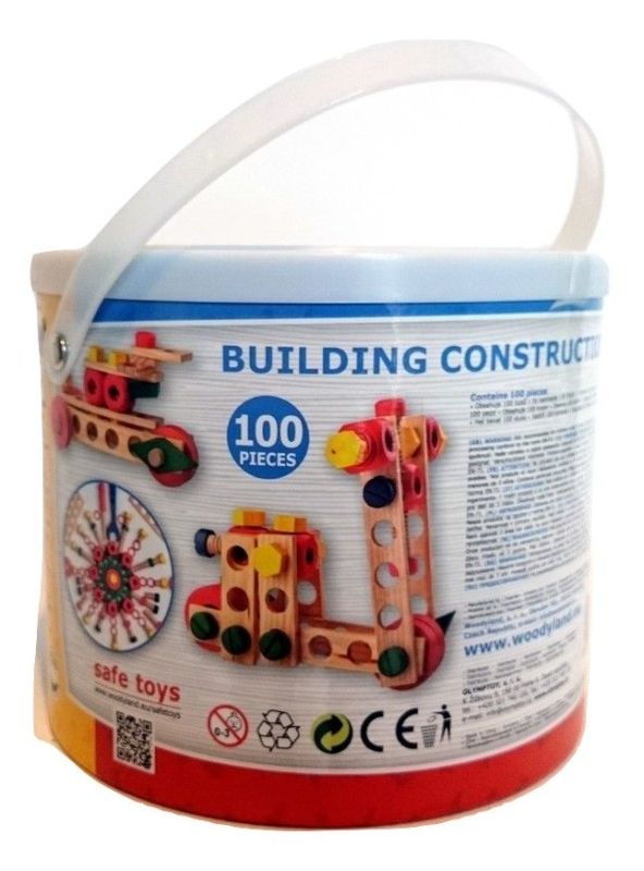 Woody Drewniane Klocki Konstrukcyjne 100 El. W Wiaderku 95001
