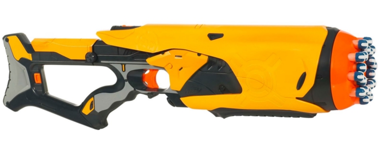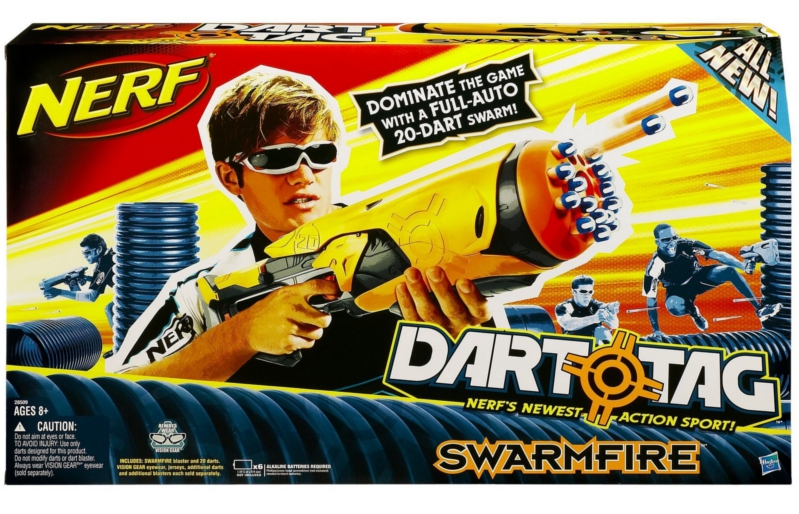 Nerf Dart Tag Swarmfire 38122 to w pełni automatyczna wyrzutnia strzałek. Wyrzutnia Swarmfire posiada obracaną lufę do której wkładamy strzałki typu Dart Tag, które przyczepiają się do specjalnych tarcz nerf oraz do swetrów. Wyrzutnia posiada także wyjmowaną kolbę, która zapewni nam pewność przy strzelaniu. Wyrzutnia posiada obracaną lufę, do której możemy załadować 20 strzałek. Dzięki automatycznie obracanej lufie strzałki można szybko wystrzelić, a dzięki temu że strzałki wkładamy bezpośrednio do lufy możemy naszą wyrzutnie doładowywać w każdym momencie zabawy. Wyrzutnia zasilana jest 6 bateriami typu LR14.