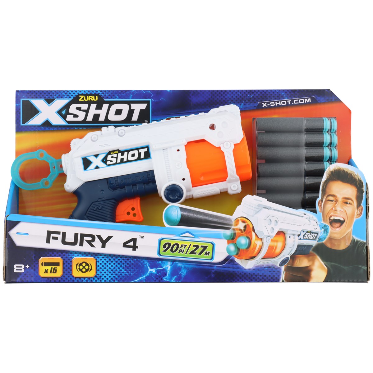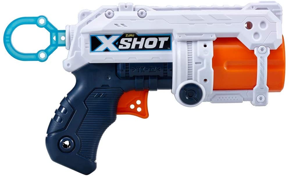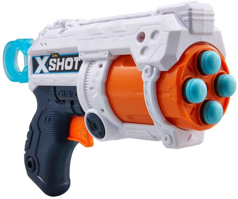 X-Shot Excel Fury 4 57055 - mały ale szalony tak w skrócie można określić Fury 4. Ten pistolet łatwo naciągnąć bo ma duży wygodny uchwyt, łatwo załadować bo strzałki wkładamy od przodu i łatwo trafić przeciwnika bo zasięg tej niepozornej wyrzutni to aż 27 metrów. Dodatkowo lufa obraca się automatycznie podczas przeładowania co jest bardzo wygodne, a jak by tego było mało w zestawie mamy 2 razy więcej strzałek niż pomieści magazynek :)