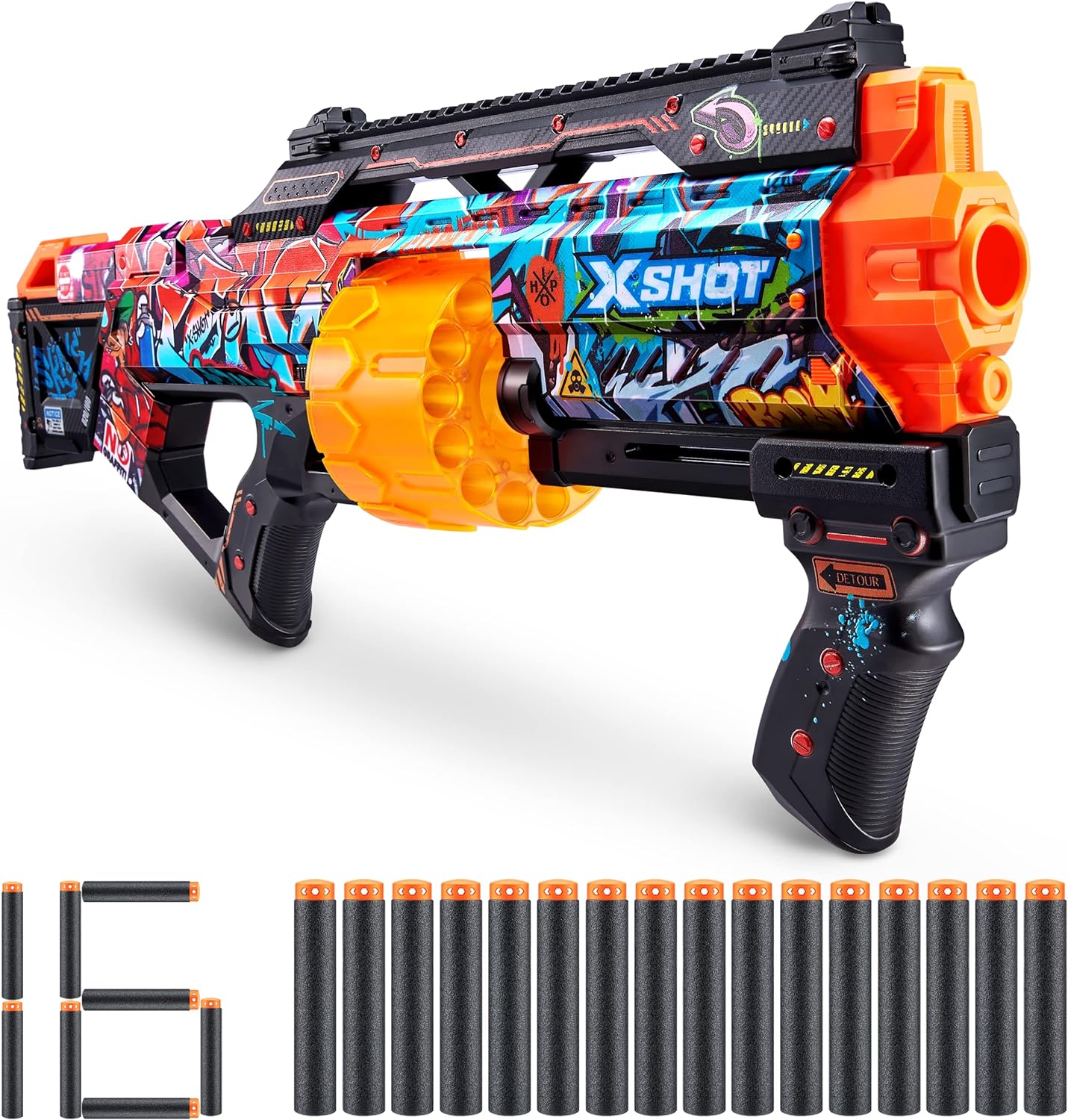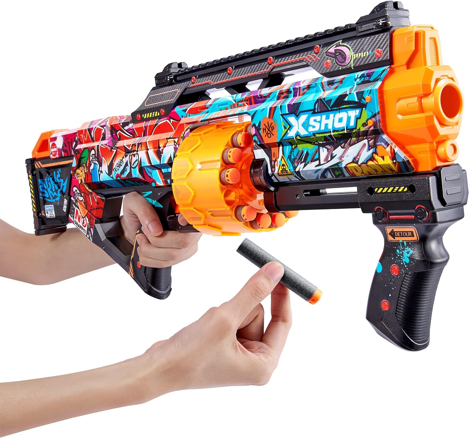 X-Shot Skins Last Stand to pierwsza specjalnie zaprojektowana wyrzutnia, która zapewnia podczas zabawy wrażenia związane z skórowaniem wyrzutni. Wybierz swoją skórę korzystając z nowej najnowocześniejszej technologii druku!
