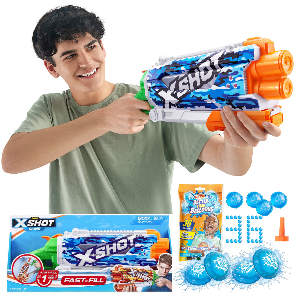 X-Shot Water Fast-Fill Skins Niebieskie moro Pistolet na wodę 11855 + Bomby wodne Nerf