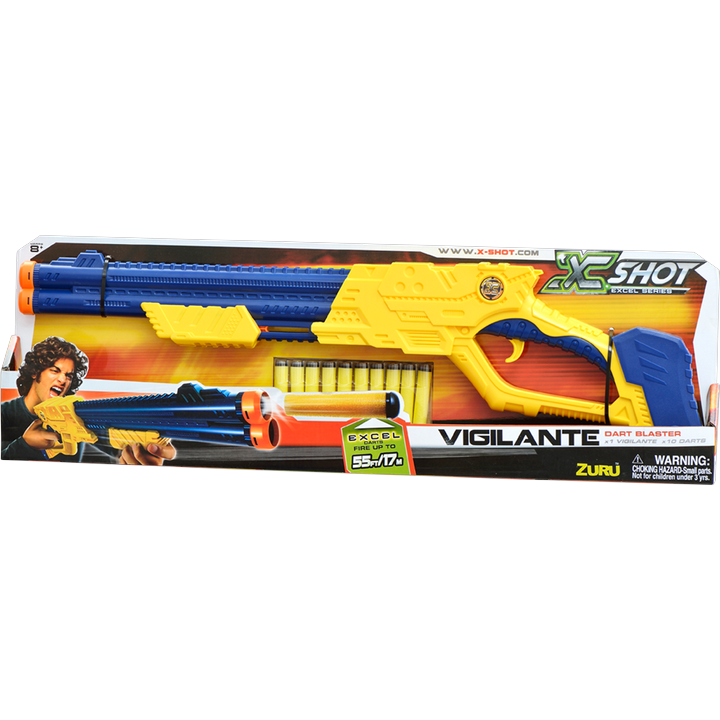 Xshot Vigilante Shootgun SH3609 to wyrzutnia, która łączy w sobie shootguna oraz dubeltówkę. Aby oddać strzał musimy Vigilante załadować “łamiąc” wyrzutnię, a następnie przeładować jak shootguna.