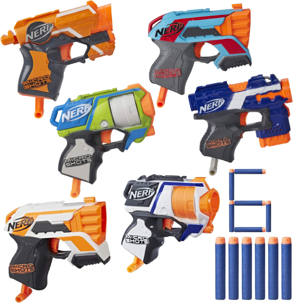 Seria Nerf MicroShots składa się z mini blasterów do kolekcjonowania, zapewnia mnóstwo radości. Ten zestaw zawiera 6 miniaturowych wersji najpopularniejszych Nerf Blaster i 6 strzałek Nerf Elite. Zestaw zawiera blaster MicroShots Stryfe Blaster, MicroShots Firestrike Blaster, MicroShots Rough Cut 2x4 Blaster i MicroShots StronArm Blaster w klasycznych kolorach. Kolejny MicroShots StronArm Blaster i MicroShots Rough Cut 2x4 Blaster są utrzymane w specjalnych kolorach. Dzięki 6 blasterom w jednym pakiecie członkowie rodziny, przyjaciele i goście imprezowi mogą zaopatrzyć się w spontaniczną bitwę nerf. Ze względu na swój mały rozmiar nadają się również do gier w pomieszczeniach i są łatwe w obsłudze. Wystarczy włożyć rzutkę z przodu, pociągnąć za uchwyt i nacisnąć spust, aby strzelać.