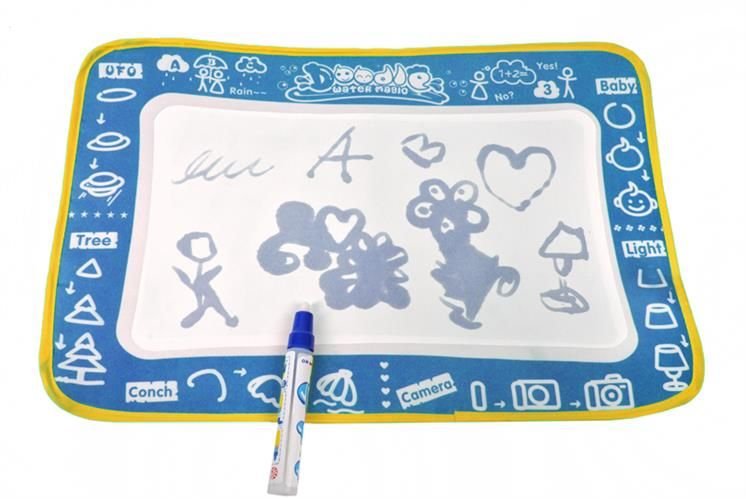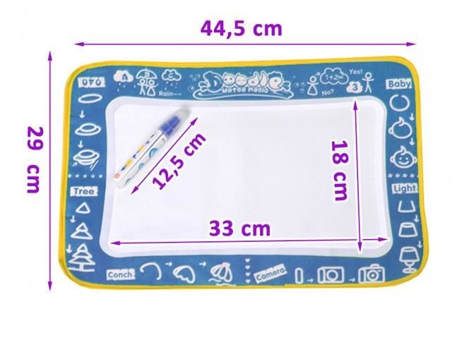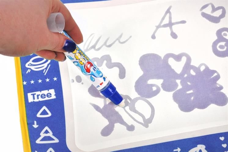 Wspaniała zabawa dla najmłodszych! Mata wodna z załączonym specjalnym pisakiem wodnym do malowania. Wystarczy napełnić pisak wodą aby rozpocząć artystyczną przygodę. Mata jest uniwersalna - gdy Twoje dziecko skończy malować, wystarczy odczekać ok. 5 minut by rysunek wyschnął i zniknął, a wtedy zabawę można zacząć zabawę od nowa. Jest to kreatywna zabawa - Twoje dziecko nie musi używać pisaka. Może również zamoczyć w wodzie rączki by robić piękne stemple.